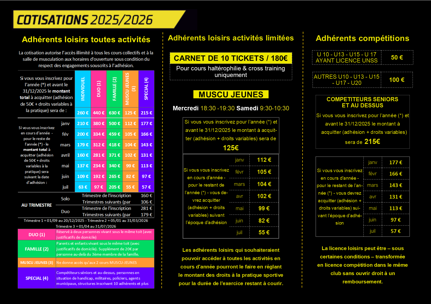 Pour les majeurs ne s’inscrivant qu’aux 2 cours de MUSCU JEUNES, remplir le bulletin d’adhésion : ici